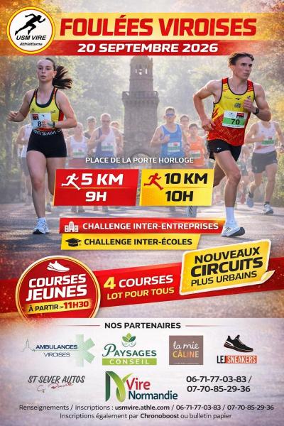 Le club de l’USM Vire Athlétisme, membre de la Fédération Française d’Athlétisme (FFA), organise les Foulées Viroises, avec le soutien de la Ville de Vire Normandie.